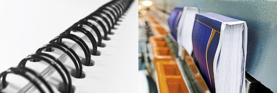 Na encadernação um dos métodos mais comuns utilizado na produção de livros é o sistema de colagem a quente. Entretanto existem outros sistemas como por exemplo: Ring wire-o e espiral, comuns em cadernos bem como o agrafo, aplicável a revistas e catálogos.